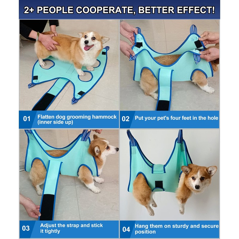 - Multifunctional dog hammock for grooming. If your dog hates claw cutting or nail cutting, use this dog hammock for home grooming, you can effortlessly hold it back and you never have to fight with your pet for claw cutting again. As an owner, you can groom your pet, trim the nails, groom the teeth and ears, and control the skin without going to a dog grooming shop or veterinary clinic. It is a good helper for dog care. Save your time and money and enjoy your life!