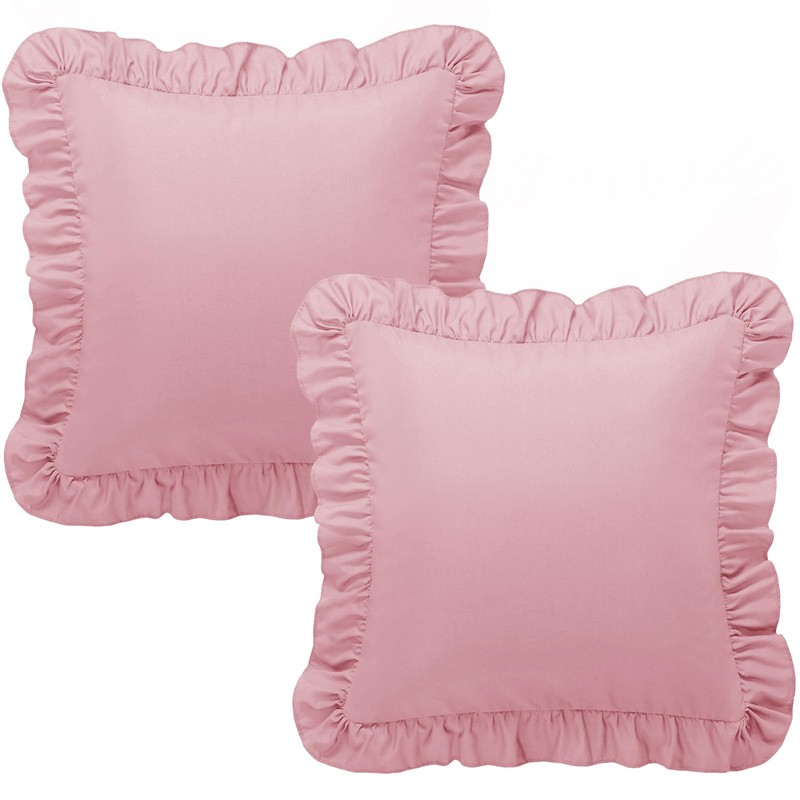 KKJIAF Ruffle Pillow Cases 26x26 Inches, Light Pink Square Ruffled Pillow Covers Set of 2, Microfiber Wrinkle Resistant Pillow Shams with Envelope Closure for Sofa Bed Living Room