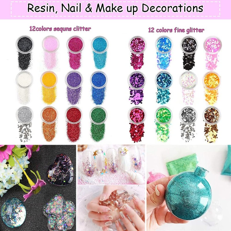 • Rich colours: glitter powder and sequins contain at least 12 different colours. With the resin kit, you can choose and adjust any colour you want. The colour is rich, bright and energetic and gives your personalised resin project more fun and creativity.