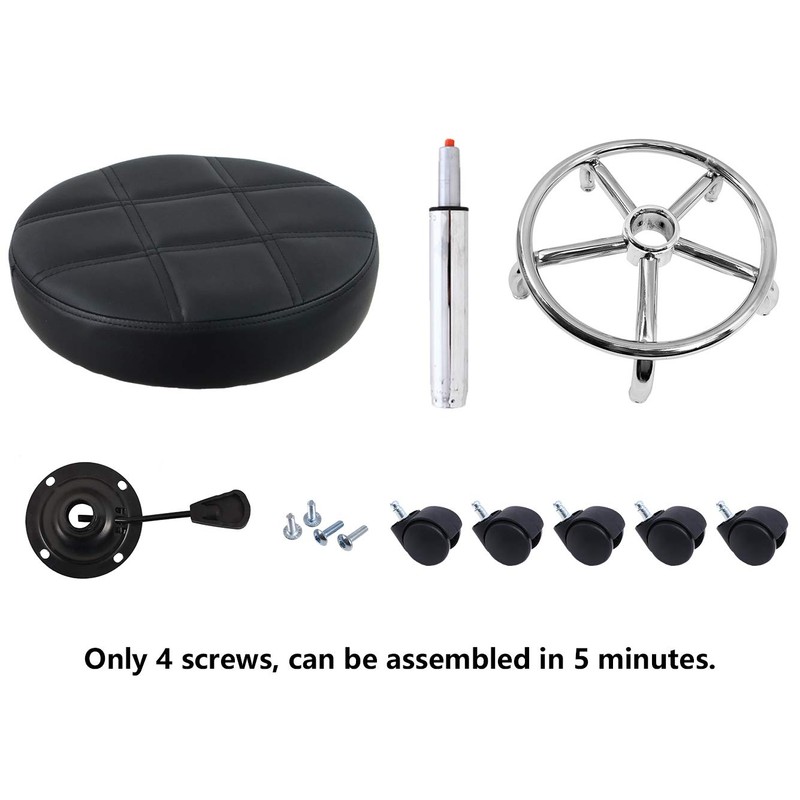 - 360 Swivel rolling stools adjustable seat height by Hydraulic gas lift from 19.3 to 25.2 inches.