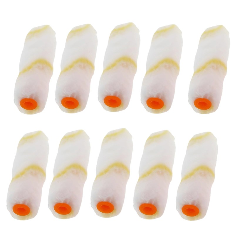 KKUANG 1 Set of 11 Roller Brush Cylinder Set with Handle Mini Roller Brush Head 4 inch Cotton Thread Blend for Crevice Sweeping Wall Painting Brushing Painting Applying Glue