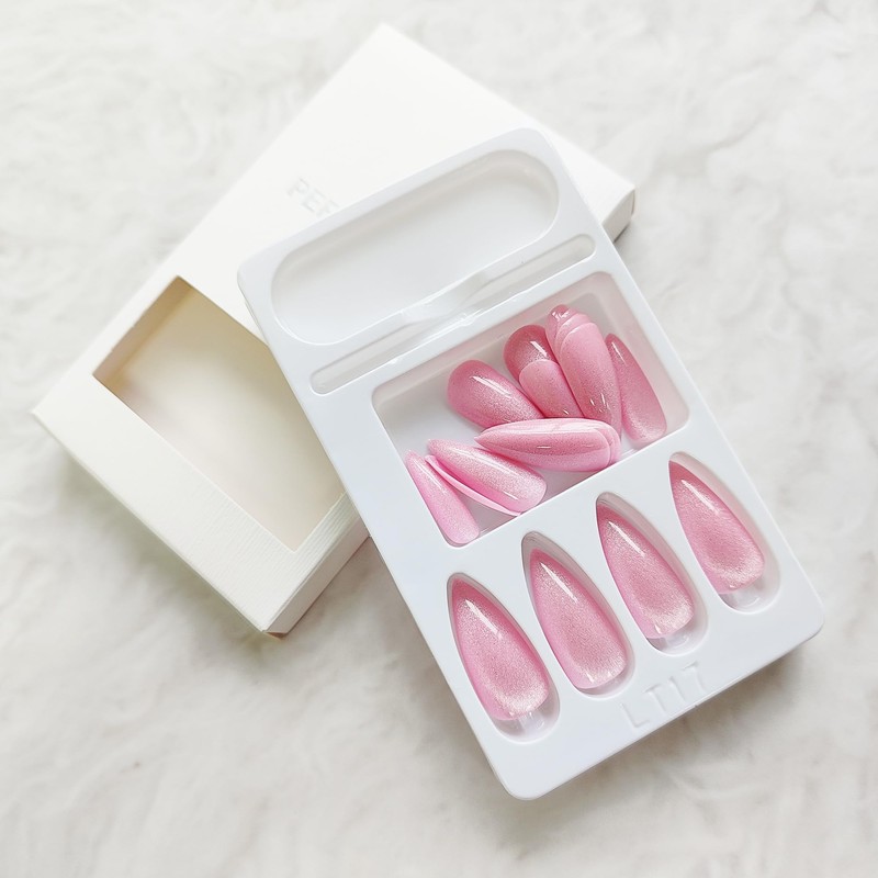 - ✨【Unique Design】With a beautiful light pink cat eye design paired with dazzling glitter, this fake nail looks stylish and elegant for most social occasions, and we're sure this stiletto nail will give you a wonderful experience!