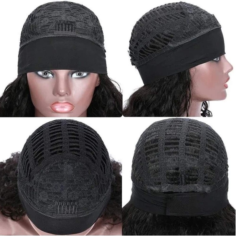 - Wear and Go Half Wig Cap Size: Our Wave Wave Curly Headband Wigs Use Breathable Elastic Cap Medium Size 21”-22.5”. Headband Wigs Glueless Magic Tape Sticks Snapping Design With 4 Combs And Adjustable Straps, Which Could Help You To Adjust The Elastic Cap To More Suitable And Comfortable