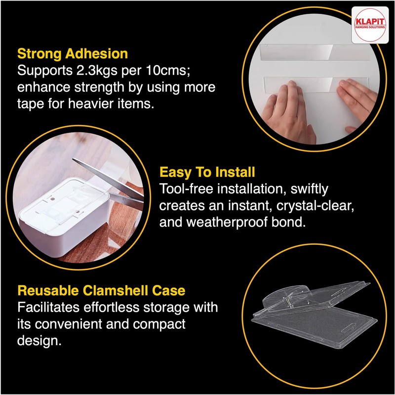 KLAPiT Super Tape Clear Double-Sided Heavy Duty Mounting Tape Enhanced Nanotechnology - Holds 150 lb 1.27lb per Inch Ideal - Frames Carpets doormats Power Cords Kitchen Tools Home & Office (1 pc pack)