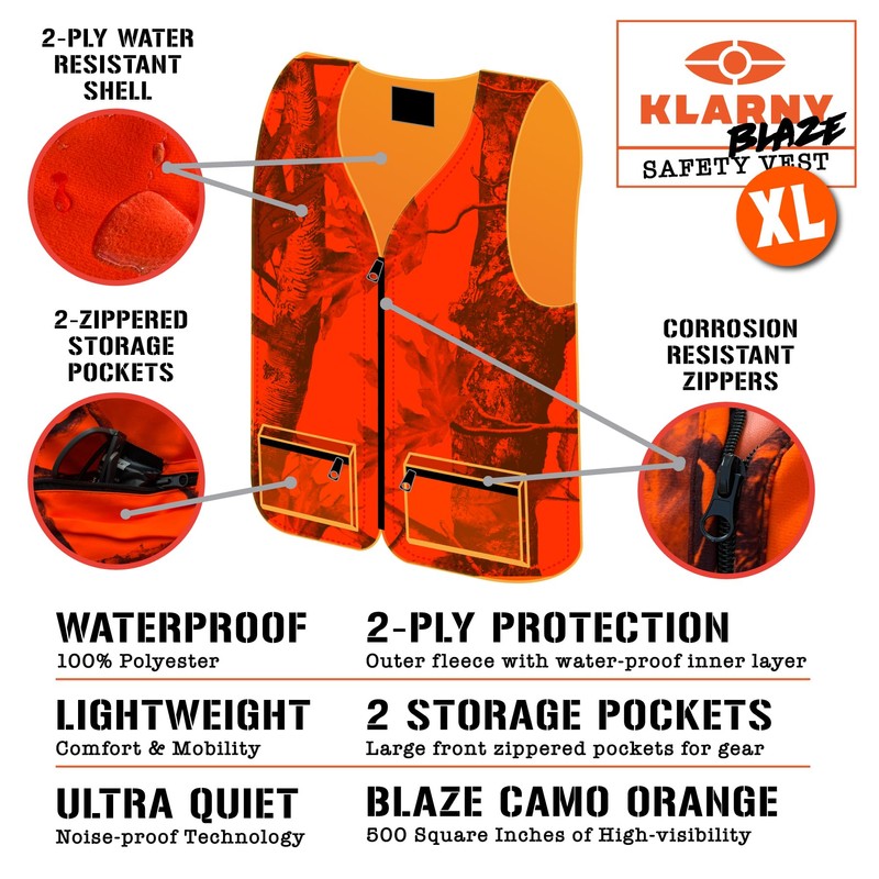 Klarny Outdoors Camo Orange Hunting Vest and Hat Combination X-Large, Premium High Performance Beanie and Hunting Vest