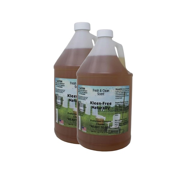 Kleen Free Naturally Preformed Enzyme Cleaner, Enzyme Solution, Multi-Purpose Cleaner, Laudry Additive, and More - Ready -To-Use - Fresh and Clean Scent - 128oz (1 Gallon) - Pack of 2