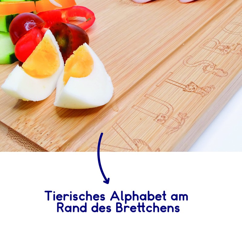 - Stylish and modern: this children's board made of natural bamboo wood is a real eye-catcher. Cute animal motifs make every child shine.