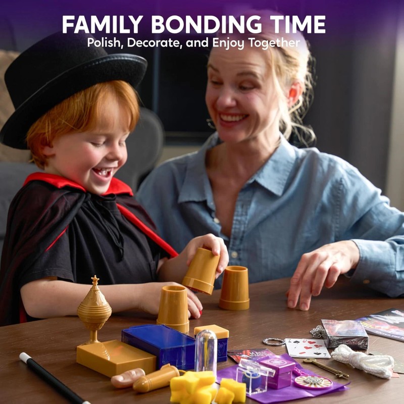 - Essential Magic Props: This kit includes all the classic tools for mastering magical illusions: cups and balls, a false thumb tip, a ball and vase, a coin case, and a magic wand. Perfect for beginners, these props are designed to help kids grasp the fundamentals of sleight of hand and perform iconic tricks.