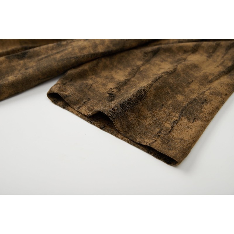 KLIEGOU Mens Hipster Crewneck T-Shirt Round Hemline Hole Tees 2505 Light Brown L