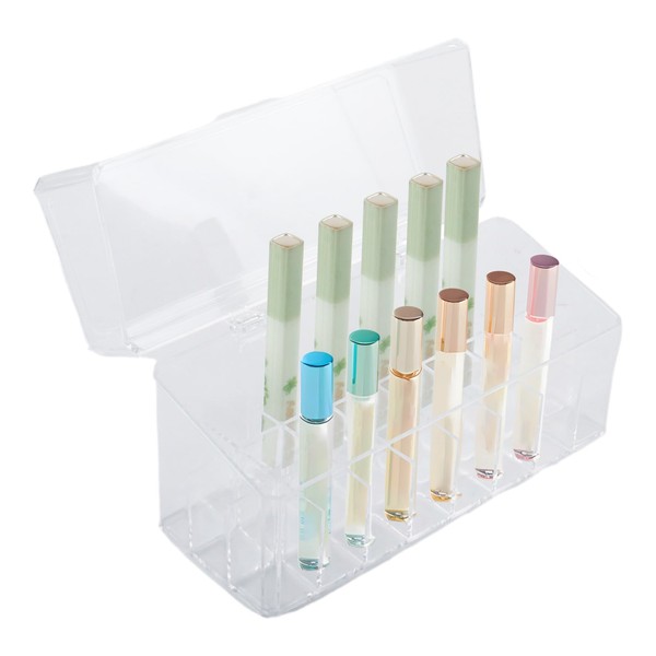 Klmnop Rollerball Perfume Organizer, 24 Grids Clear Acrylic Perfume Organizer Holder with Lid, Container Storage for Mini Perfume, Perfume Sample and Lipstick(Clear)