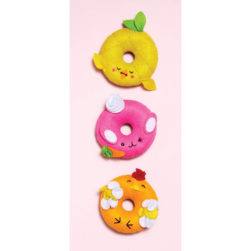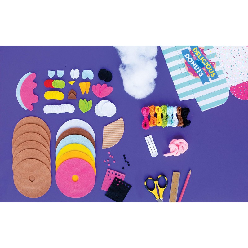 - Everything needed to sew 6 cute donut animal plushies - precut felt, polyfill stuffing, embroidery floss, needles, and full color instructions