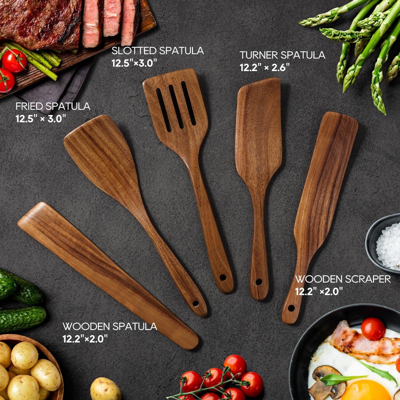 • 【Premium Natural Teak】Made of 100% natural teak, strong, durable, and smooth to the touch with unique wood grain. Each wooden spatula meets your daily cooking needs while adding a natural aesthetic to your kitchen.