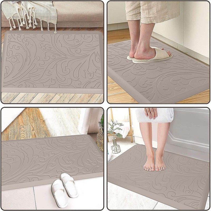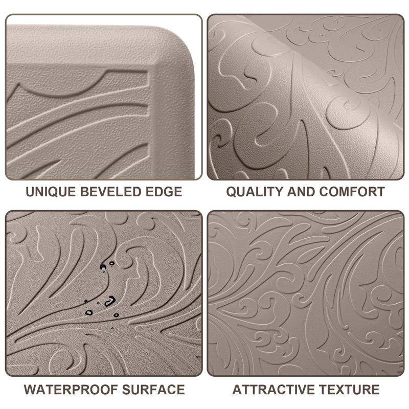 - ANTI SLIP: the cushioned comfort mat is designed with a unique beveled edge; the water-resistant top area has an attractive texture and the underside is super non-slip bottom, helpful to prevent tripping and slipping