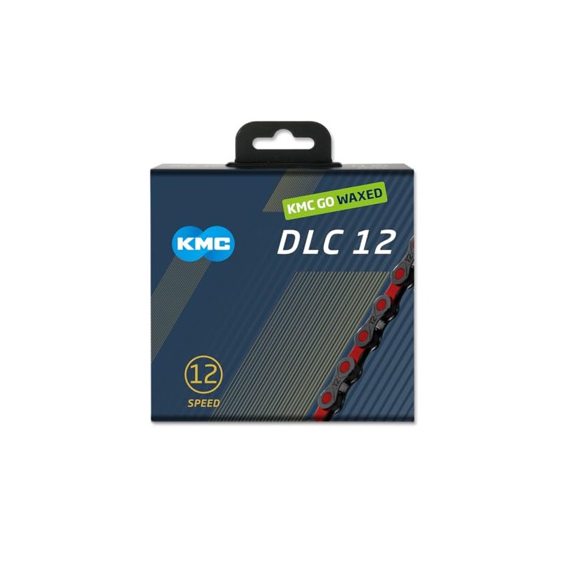 KMC Bicycle Chain, DLC12 Waxed, 1/2 Inch x 11/128 Inch, 126 Links, 12-Speed, Lightweight, Black/Red