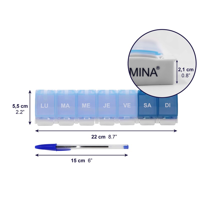 KMINA - Tablettenbox 7 Tage, Groß, Französisch, Medikamentenbox - Made in Europe