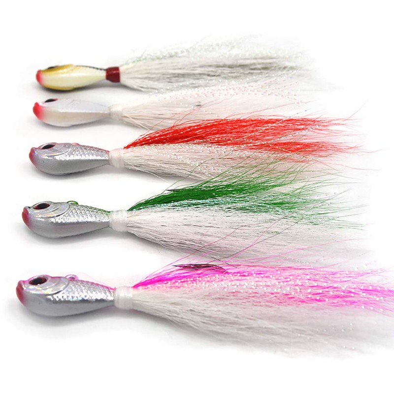 kmucutie 5 pcs Bucktail Jig Bass Flounder Striper Bluefish Fishing Lure Glow ...