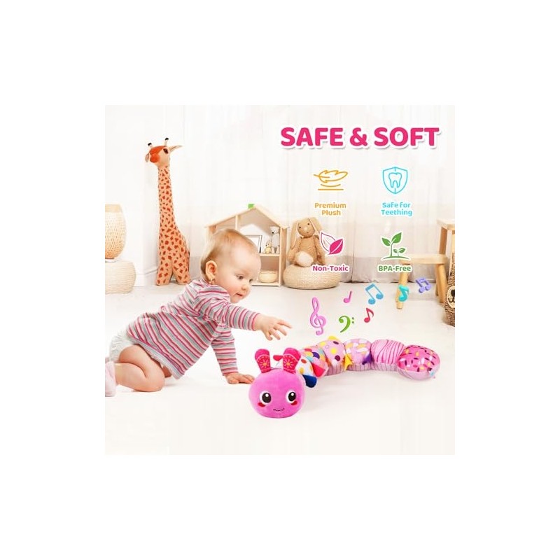 KMUYSL Baby Toys 0-6 6-12 Months, Sensory Music Animal Stuffed Toy for 0 1 2 3 4 5 6+ Months, Plush Toy with Crinkle and Rattles for Infant Newborn, Tummy Time Toys Gifts for 0-3-6-12 Month