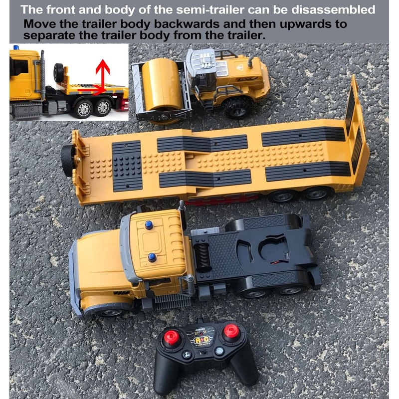 Remote Control Semi Truck Toy For Kids - 1:24 RC Semi-trailer Engineering Tractor With Sound And Lights, Trailer Truck Toy With Inertia Roller, Construction Vehicles For Boys & Girls 3-8 Years Old
