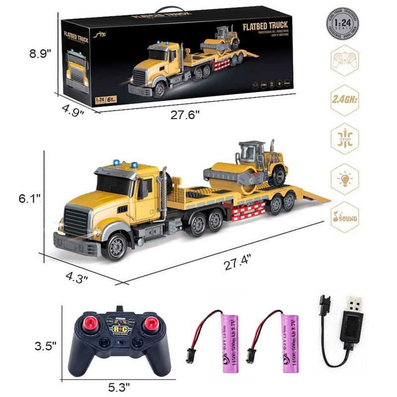 - [ Playing with Construction Vehicles] -- 1:24 full scale, Length 27 inches, come with an inertia loader. You can drag any type of vehicle such as a car, excavator, fire truck, bulldozer, dump truck etc.