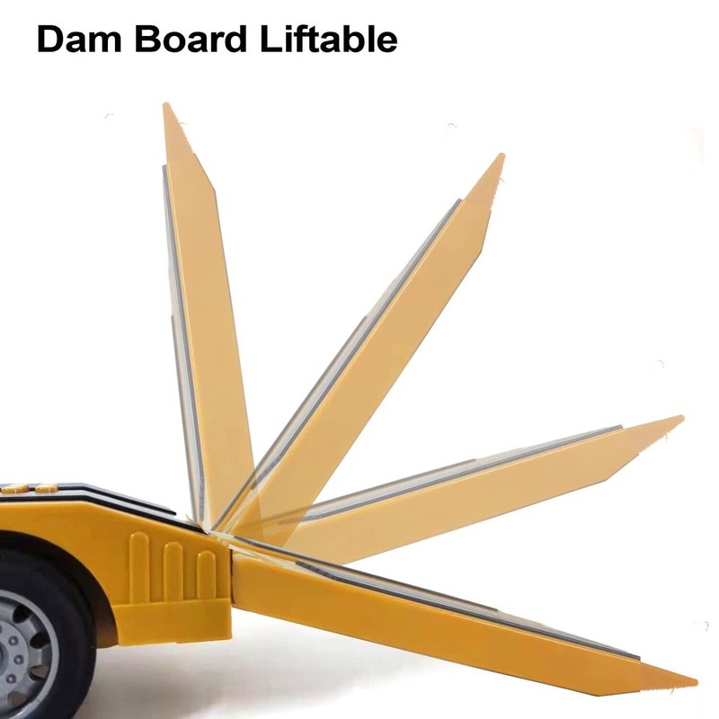 - [Full Functional Trailer Truck] High Simulated Semi Truck, go forward/backward, turn left/right, flexible connection with the trailer and truck, Firm trailer board can load and unload, 3 music, head and roof lights.