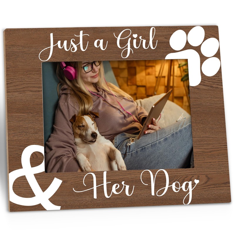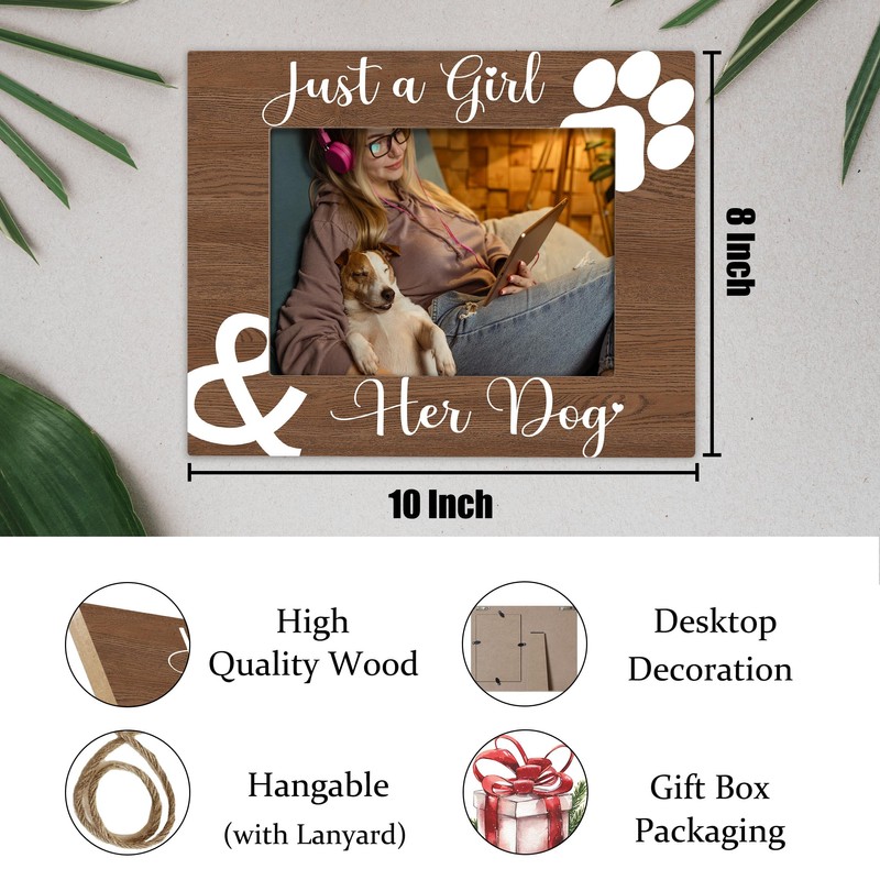 Kneaotoaji Dog Picture Frame Gifts - Dog Lovers Gifts for Women, Dog Memorial Picture Frame, Just a Girl and Her Dog Photo Frame for Tabletop or Wall Hanging 5x7 Photo