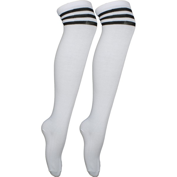 Knee Thigh High Sock Cheerleader Pub Golf Fancy Dress Stripe Socks White/Black Stripe