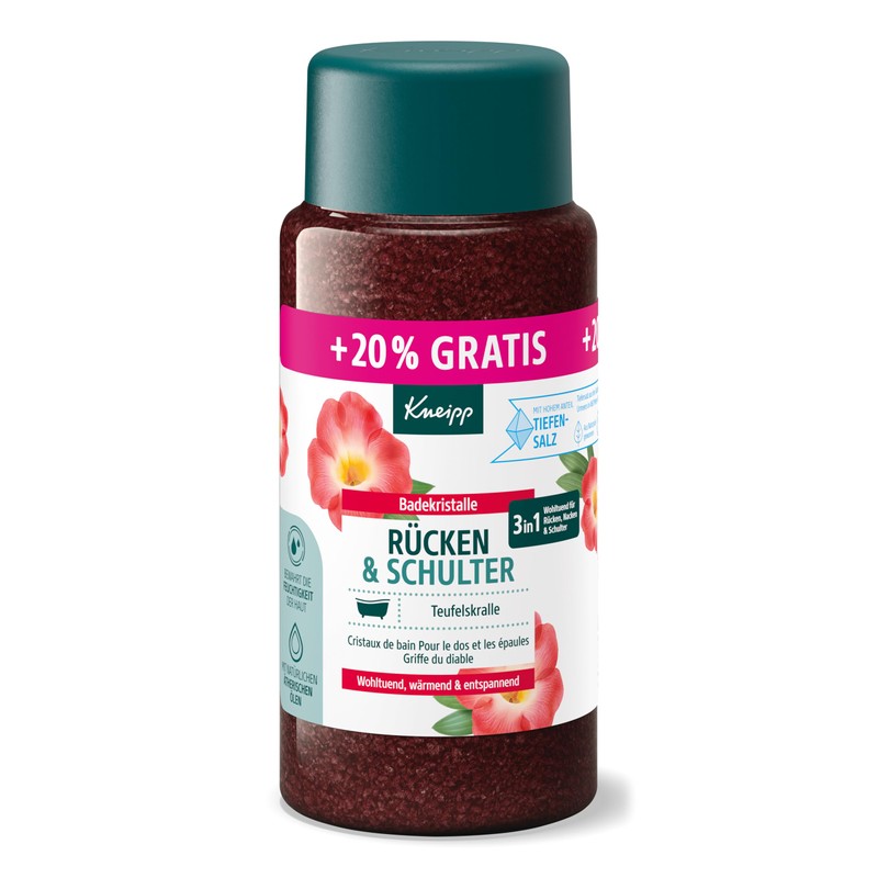 Kneipp Bath Crystals Back & Shoulder + 20% Free – with Valuable Extract of Devil's Claw – Soothing, Warming, Relaxing – 720 g