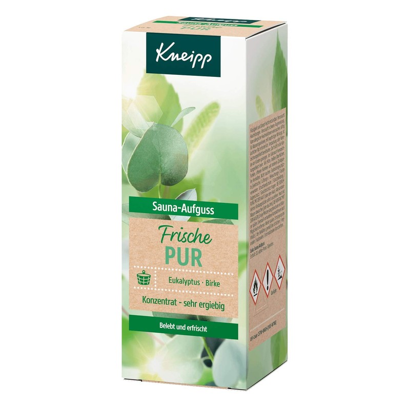 The freshly tart Kneipp sauna infusion eucalyptus birch contains valuable, carefully selected essential oils in proven Kneipp quality. Extracts of birch complete the soothing effect of the Kneipp sauna infusion and make it an effective addition to regular sauna sessions.