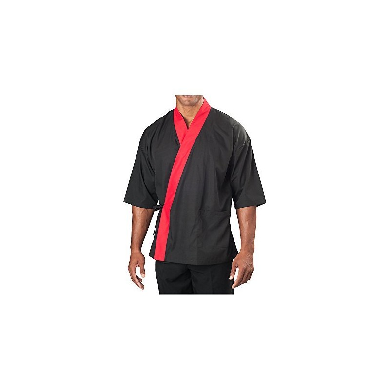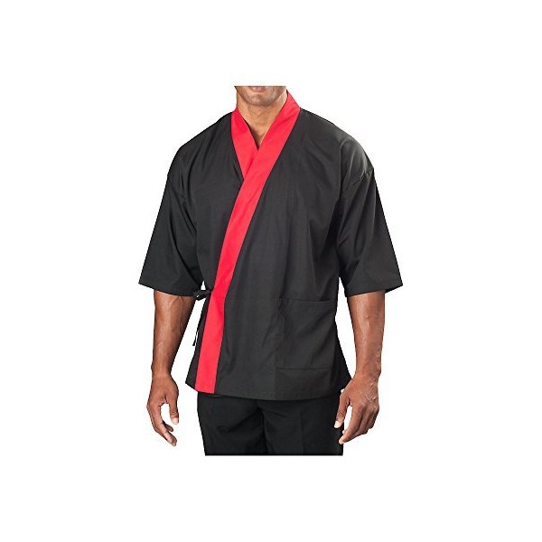 KNG ¾ Sleeve Sushi Coat, Black with Red Accent, 2XL
