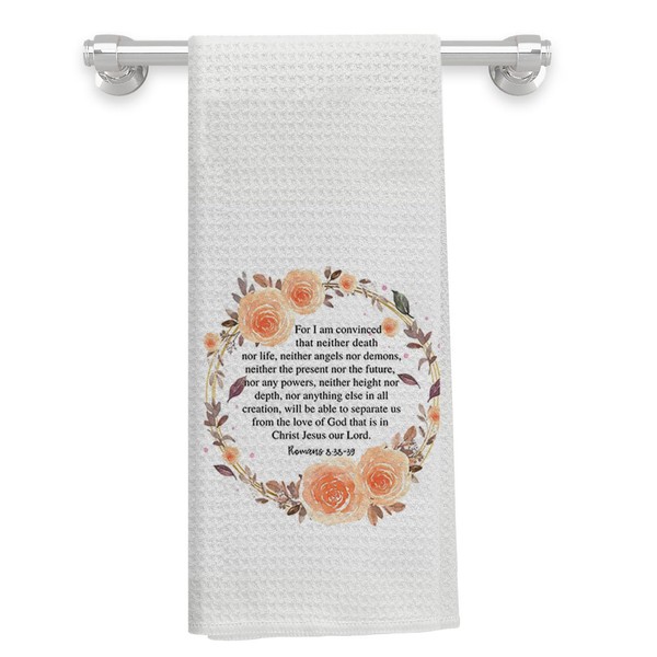 Knibeo Christian Gifts for Women Faith,Bible Verse Scripture Kitchen Towels,Floral Kitchen Towels,Christian Decor,Christian Hand Towels for Kitchen Bathroom,Romans 8:38-39,16x24 Inch