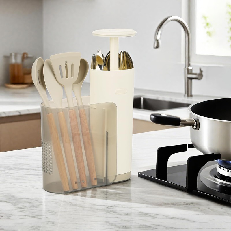 - 【Built-in Utensil Storage Zone】Convenience meets organization: alongside the knife area, there’s a dedicated section for utensils like scissors, peeler, or spatula. Keep all your essential kitchen tools in one place, eliminating clutter and streamlining your workflow.