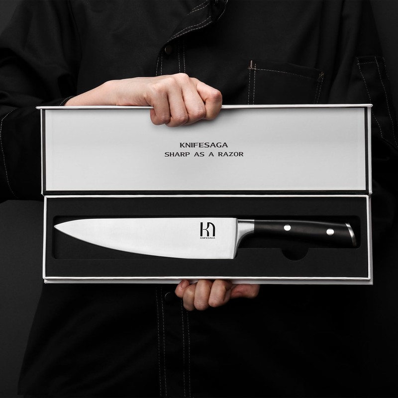 KnifeSaga Chef Knife 8 inch Professional, Japanese Chefs Knife High Carbon Stainless Steel, Razor Sharp Kitchen Cooking Knife for Vegetable Chopping, Meat Cutting Knife with Full Tang Handle