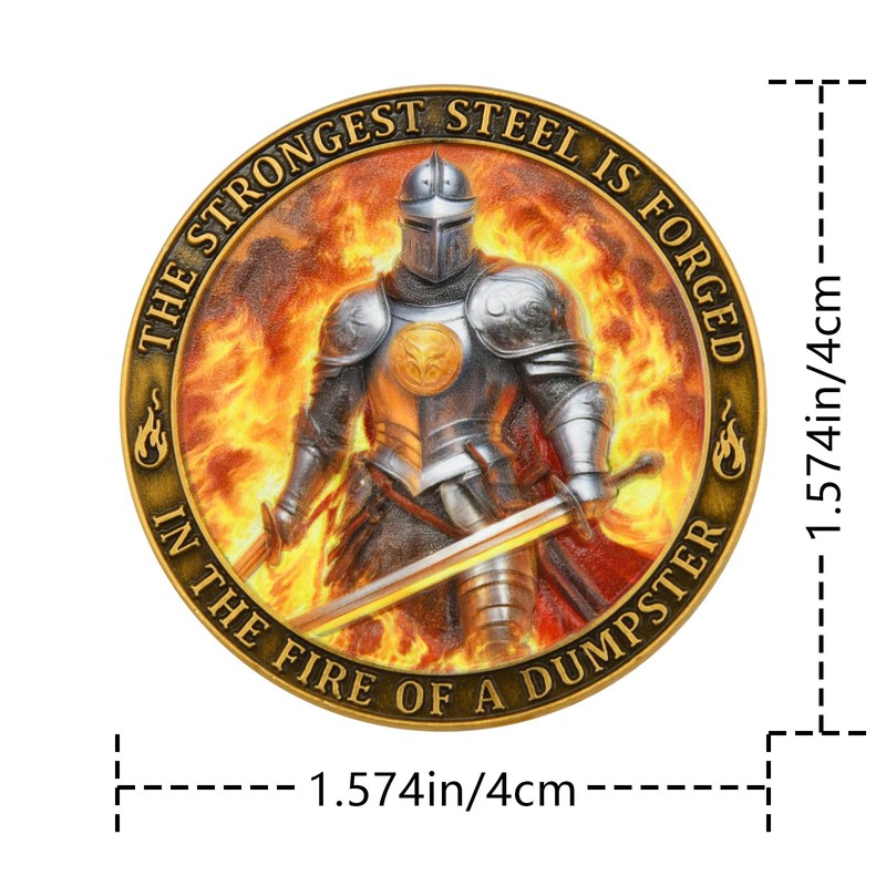 Knight & Phoenix Double-Sided Challenge Coin, Zinc Alloy, 1.574", Sculpted in Fire & Dumpster Art, Symbolizing Resilience & Rebirth, with Bold Strongest Steel Forged in Fire Edges