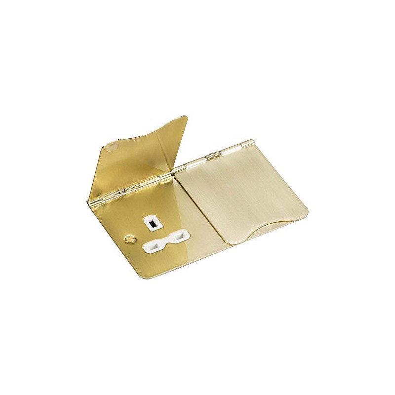 Knightsbridge FPR9UBBW Flat Plate 13A 2G Unswitched Floor Socket, Brushed Brass with White Insert