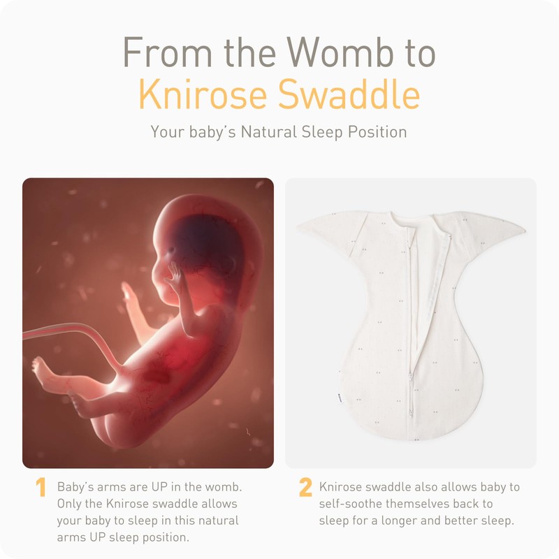 - Uterine shaped design with wings - Knirose baby swaddling bag creates a familiar and secure feeling like in the womb, the anti-frightening effect and the arms up position help your baby calm and fall asleep independently.
