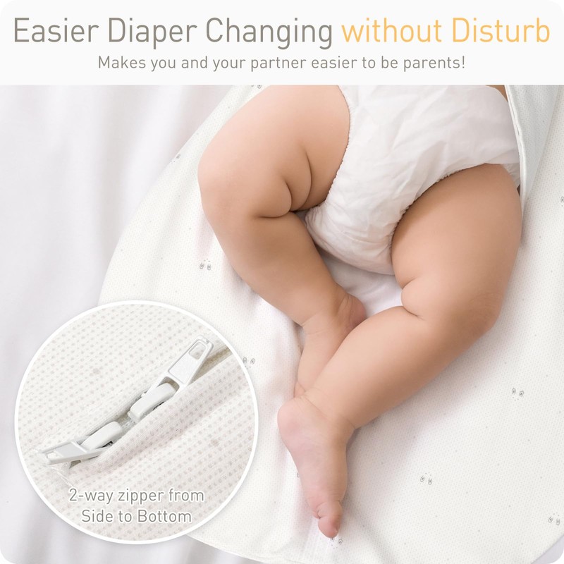 - Double zip design - It allows easy nappy changing without disturbing sleep, for a safe and undisturbed sleep for your baby. It also reduces the risk of overheating.