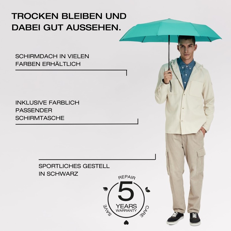 The German brand Knirps has stood for high-quality umbrellas for more than 90 years, since the invention of the pocket umbrella in 1928. Weather protection is our passion, so we offer a wide product portfolio for many weather conditions. Special umbrella models offer over 95% UV protection which is UPF of 50+, others are equipped with reflectors to ensure good visibility at night. Quality and safety are our highest goals in product development. - Since 1928.