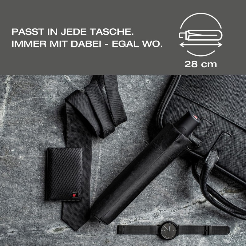 - HOCHWERTIG & ELEGANT - Durch den matt schwarzen Griff kombiniert mit dem farbigen Schirm aus schnelltrocknendem Stoff ist der Knirps zeitlos schick - Die Farbe des Schirms wählen Sie