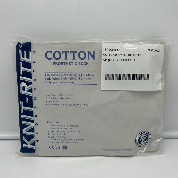 Knit-Rite 2Ply Hip Disarticulation Cotton Prosthetic Sock 14” Top (18x8.5x16).