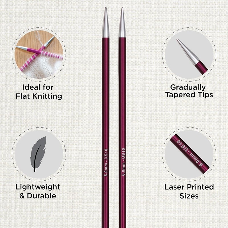 KnitPro Zing Deluxe Single Pointed Needle Set 10" (25cm) | 8 US Size (1.5 to 10)