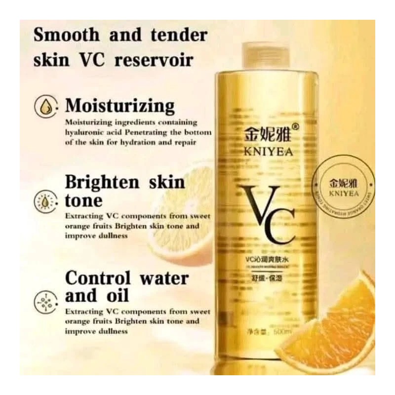 Transform your skincare routine with the KNIYEA VC Soothing Toner, a luxurious 500ml formula designed to nourish and rejuvenate your skin. Infused with a potent concentration of Vitamin C derived from sweet orange extracts, this toner promotes a vibrant and healthy complexion.