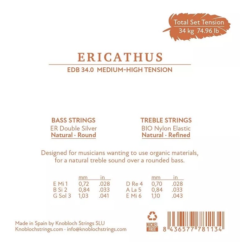 Are you searching for the perfect strings to enhance your guitar's warm and natural tones? Meet the KNOBLOCH EDB 34.00 string set, crafted for musicians who value impeccable intonation and durability. These exceptional strings provide a beautiful blend of BIO Nylon trebles and double silver basses, offering a harmonious sound that eliminates any plasticy undertones. Whether you're a seasoned guitarist or an enthusiastic learner, CalidoGuitars.com is your trusted source for high-quality guitar accessories that meet your musical needs.