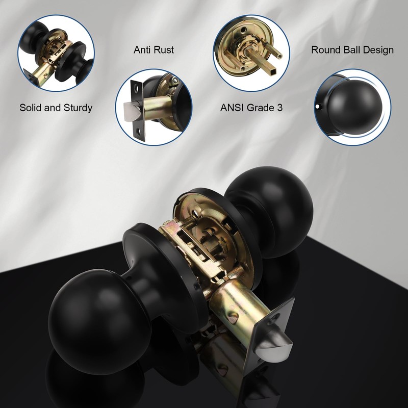 • Quality Material: The black door knob is made of high-grade stainless steel, anti rust, easy to clean, can be used for many years. The sturdy and solid inside door lock exceeds 250,000 cycles with ANSI Grade 3 verification
