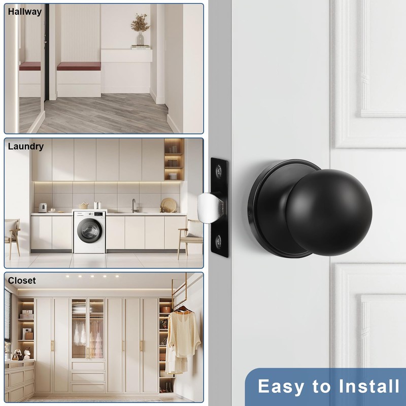 • Classic Design: Smooth touch, featuring a perfect black finish to create a modern style for your home. The sleek black door knobs have a round ball design that makes it more comfortable to turn