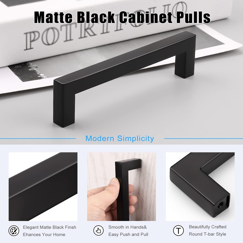 - ★MATERIAL - Our Cabinet Pulls are made of high grade STAINLESS STEEL, with a fine MATTE BLACK finish.