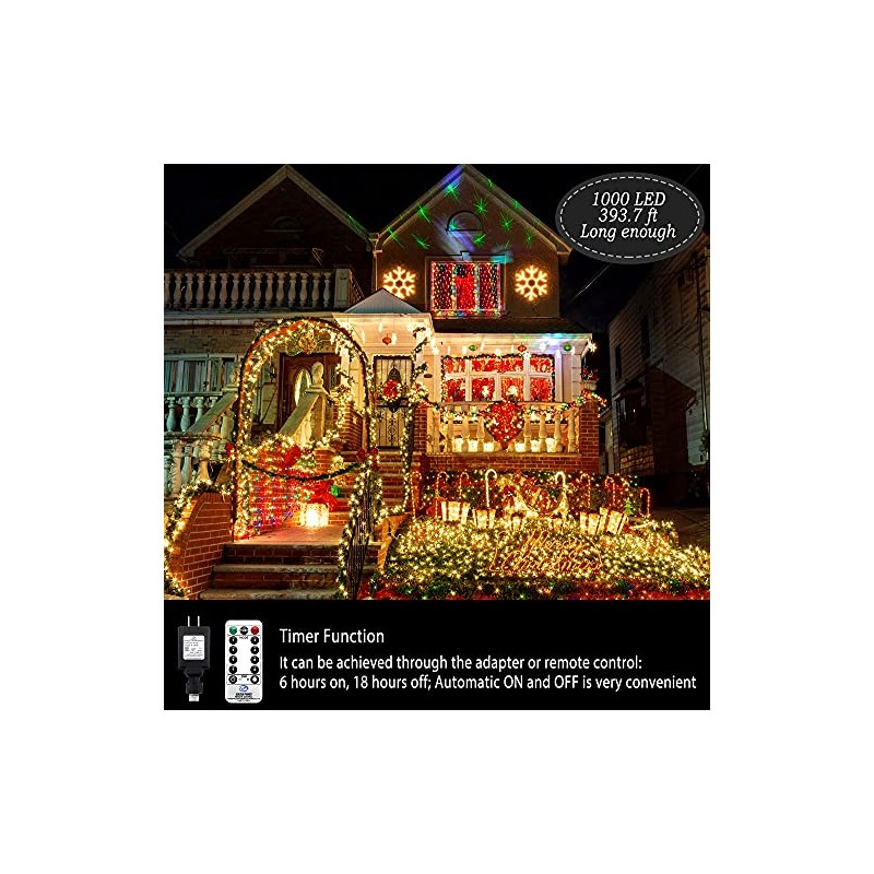 - REMOTE CONTROL AND 8 LIGHTING MODES: KNONEW Christmas decorations outside lights comes with a responsive remote control, you can toggle between 8 lighting modes:1.Combination, 2.In waves, 3.Sequential, 4.Slo-glo, 5.Chasing/flash, 6.Slow fade, 7.Twinkle/flash, 8.Steady on.You can also set the timing function: 8H on, 16H off, or adjust the brightness of 25%--25%--75%--100%.Giving you a customizable and cool aesthetic that’s hard to otherwise achieve.