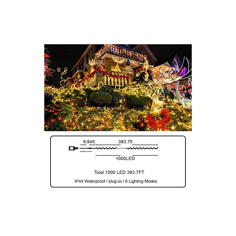KNONEW 403ft 1000 LED String Lights Outdoor Christmas Lights 8 Modes & Timer Fairy Light Plug in Waterproof LED String Lights for Xmas Yard Tree Wedding Party Holiday Decorations(Warm White)
