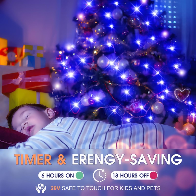 - Smart Timer & Memory — Let Your Lights Remember Your Life: With an integrated timer and memory chip, forget about turning the LED Christmas Lights ON or OFF manually. Decorative Lights automatically glow at 5 PM, welcoming you home after a long day, and turn off at 11 PM to save energy. For special occasions or extended celebrations, pre-set "Party Mode" (7 PM–3 AM) or "Holiday Mode" ensures your festive spirit never fades.