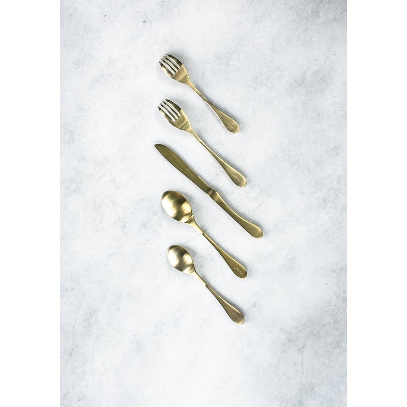 Knork 5 Piece Flatware Set, Satin Brass, Titanium Coated Stainless Steel