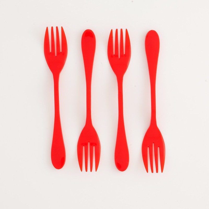 Knork Plasticware Reusable Plastic Forks, 24 Piece Set, Red